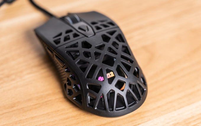 由于采用了镂空式设计,因此玩家可以透过鼠标空隙观察到鼠标内部的RGB光带,十分地耀眼。