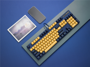 蔚蓝黄潮配色灵感来源于小黄人,以深蓝、明黄配色,在黑色系为主的机械键盘产品中脱颖而出。键盘采用纯白背光系统,自带12种背光灯效,带来难以比拟的视觉新体验,一见倾心。