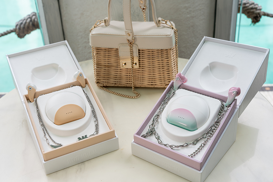 在开关充电盒的使用体验上面,ROtt KRON乐旷也花费了不少心思,耳柄倒挂式的放置设计使得我们在拿起耳机的时候不易脱落,耳柄上也有指示灯会显示耳机是否还有电量,关上耳机盒时还会发出一阵清脆的响声。而且,为了进一步凸显耳机的装饰属性,这四款耳机都分别配备了与耳机本体相搭配的项链,通过耳机耳柄的内侧扣环就能方便的将项链和耳机串起来佩戴使用,甚至可以作为手链装饰物也毫无违和感,Fashion感就此油然而生,时尚潮男时尚女郎就是你。
