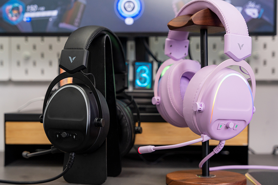 游戏外设的颜值重不重要?个人觉得当下尤为重要,现在的游戏外设产品在形态上如果不能有颠覆性改变的话,就得在外观设计上做文章才能获得更高的辨识度。 VH650游戏耳机在配色上就很有亮点,暗夜黑的款式与电竞氛围搭配自然,冷酷的形象也能让人感觉到一丝杀气。而迷雾紫更是让人眼前一亮,微醺的紫色男生女生都能通吃,也能带来别样的电竞风味。