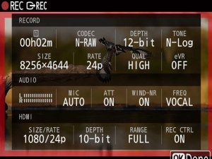 Z 9的固件2.00版本通过添加有用的功能,显著提高了视频录制的可操作性。录制过程中,取景器和显示屏上会显示红色的REC框,以表示正在录制,防止误按录制按钮。此外,可以在单个屏幕上使用“查看视频信息”菜单确认视频录制设置,例如帧大小和帧速或音频。波形监视器可以根据被摄体位置确认亮度级别。此外,在M模式下录制视频时,ISO感光度可以1/6步长进行调整,在防止ISO超出需要的情况下进行更精细的曝光调整。