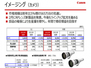 佳能公布2022Q1业绩 相机收入增加 计划年内销售300万台相机