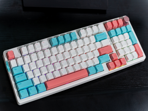 颜值就是第一生产力,现在机械键盘的外观好看与否也成为了许多用户选购的重要指标,AK966键盘总共有三个配色,笔者手上的“梦夏”版以白色为主,并有粉红和青色加以点缀,看起来很有清新感,很符合年轻用户的审美口味,键盘的右上角还配了一个圆形的音量金属旋钮,可以轻松调节电脑音量,十分方便。
