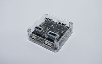 奥睿科此款集线器外观采用全透明外观,可以看清楚PC主板的零件,上面所使用的电容电感电阻二极管以及芯片的规格可以看得清清楚楚,电子元器件组成的科技感。