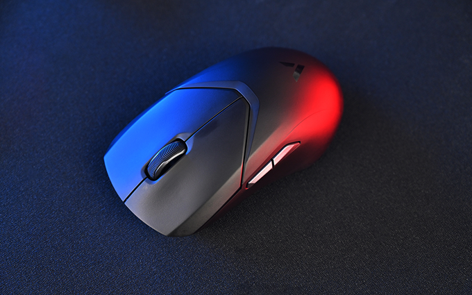 鼠标的左右按键按压时反馈感很强,会有比较清脆的点击声,反应也比较迅速。在鼠标的左侧留有前进与后退按键,按键采用不规则凸起的形状,而在过渡部分以斜面处理,即保持了独特不规则的机甲美感,而凸起的部分以及两个按键之间的分割,也提升了盲操的辨识度。