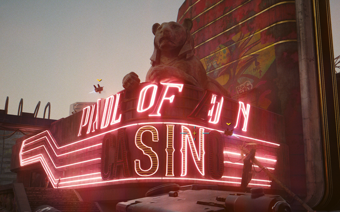 《赛博朋克 2077:往日之影》中新增了“狗镇”可供玩家探索,因此我们首先看看在“狗镇”中的画面表现。“狗镇”是夜之城破败区域中的城中城,同时也是叛军上校的私人领地,整体呈现出破败又草木皆兵的场景。