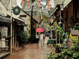 但冷清,也会展现出城市不同的一面。就像酒店楼下的这个赶摆街,在夜晚,我们只会见识到它热闹的一面。而在白天,你才会发现它独特的另一面。赶摆街的闻名,在于它马卡龙配色的店铺。但是在夜色下,你很难会发现这一点。而到了白天,人群消失,店门关闭,它的不一样就会显现出来。