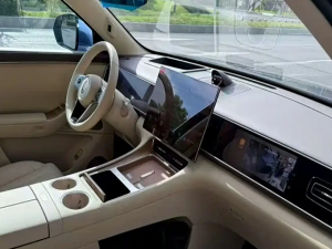 与M8/M9内嵌T字布局内饰设计不同,这次问界M7选择采用悬浮式中控屏设计,这样的好处就是屏幕尺寸可以不受中控台的限制,预计问界M7的中控屏尺寸会有惊喜。另外悬浮式屏幕也可以加入活动支架,使得屏幕可以进行横移、旋转等操作,比亚迪、深蓝、小鹏都有类似的设计,不知道问界是否也会如此。
