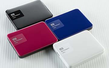 我们拿到的新版的My Passport Ultra是2TB蓝色的,但其实常见的有4个颜色,我们找了些其他颜色的硬盘照片来让大家欣赏一下。