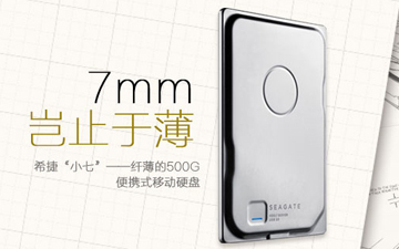 移动硬盘已经成为人们存储生活的一部分,对于经常外出,需要携带移动硬盘的人来说,移动硬盘的机身自然是的越轻薄越好。2015年是希捷首次发布第一款量产型硬盘的35周年,为了庆祝,希捷推出了一款名叫Seven的纪念款移动硬盘。机身厚度仅有7mm,将移动硬盘的轻薄推到了新的高度,也让它的命名变的 名副其实,让很多人看到了希捷在工业技术上的非凡成就,今天小编就带大家一同进入今天的实测环节,感受一下最薄体验。