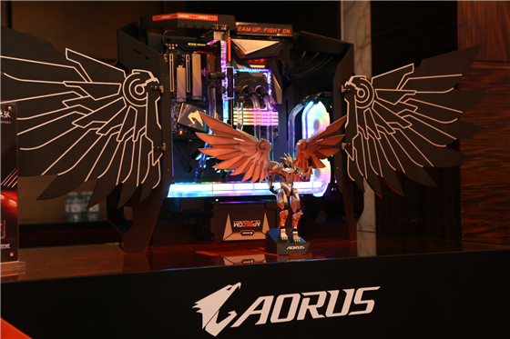 在现场我们也实拍了今天技嘉AORUS发布的多款产品,此外还有MOD大神采用技嘉AORUS产品设计的炫酷主机。
